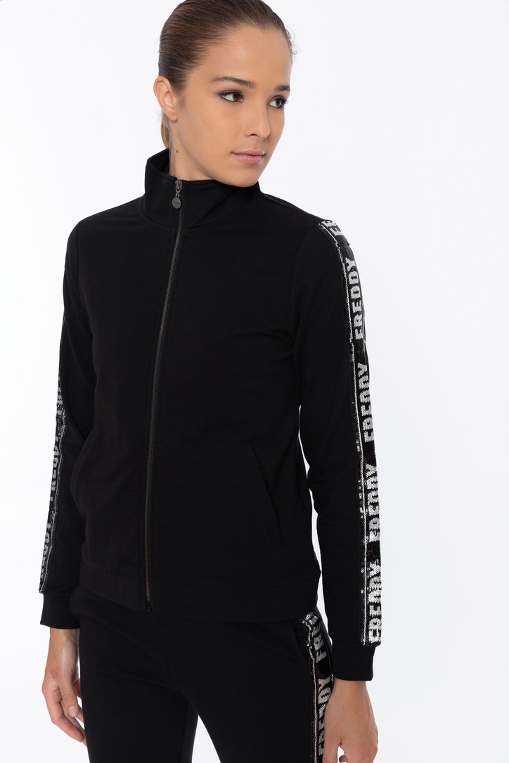 February 20, 2021 フルジップスウェットジャケット フルジップスウェットジャケット ¥13,662 (税込) 袖に黒と白のスパンコールで作られたFREDDYバンドが付いた黒のレギュラーフィットハイネックスウェットジャケット。ラウンドプラーで留めるフルレングスのフロントジッパー、ベソムポケット付き。柔軟な起毛ストレッチフリースで、スパンコールのディテールが華やかなタッチを生み出します。スポーツシーンから日常まで、女性らしさにあふれた快適なルックスのこちらのジャケットであなたのFREDDYスタイルを完成させて下さい。 コットン95% ポリウレタン5%