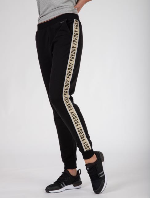 ホワイトとゴールドのルレックスのFREDDYサイドバンドで飾られたストレッチブラッシュドフリースロングパンツ。 リブ編みのウエストと袖口、斜めにカットされた快適なフロントポケット、レギュラーフィット。 フロントに小さなメタルFREDDYのロゴをあしらい、都会的でフェミニンなトーンでこのパンツのスタイルのディテールを完成させています。 生地の柔軟性は体の形にやさしく追従し、快適さと動きの名の下にスタイルを完成させるのに理想的なパンツになります。